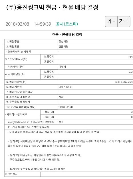 | 배당기준일 | 배당금 지급일 | 배당금 | |