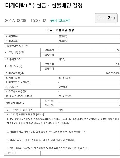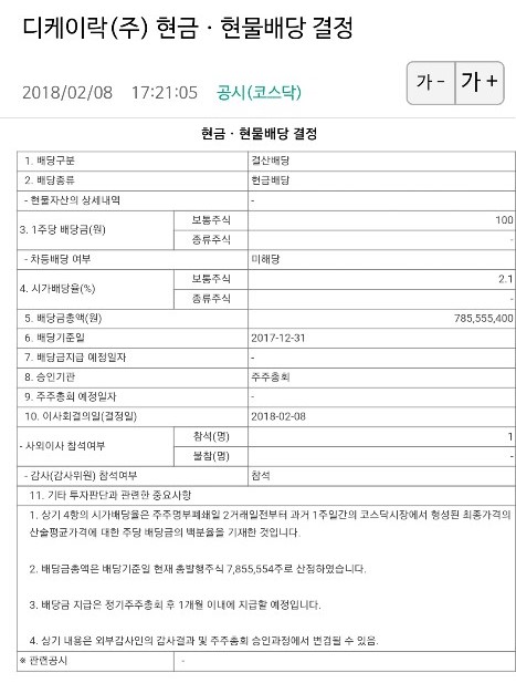 이번에는 디케이락 주가, 배당금, 배당일 및 정보에 대해 알아봤습니다.
