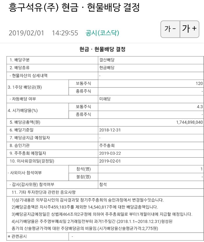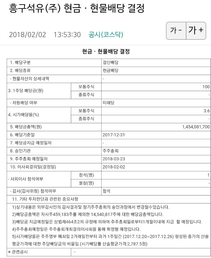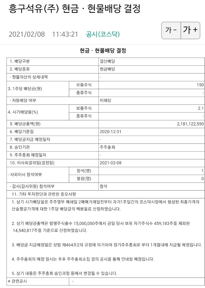 이번에는 흥구석유 주가, 배당금, 배당일 및 정보에 대해 알아봤습니다.