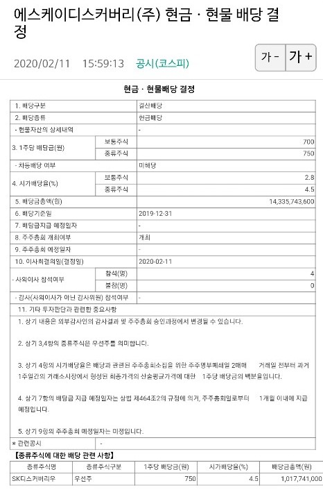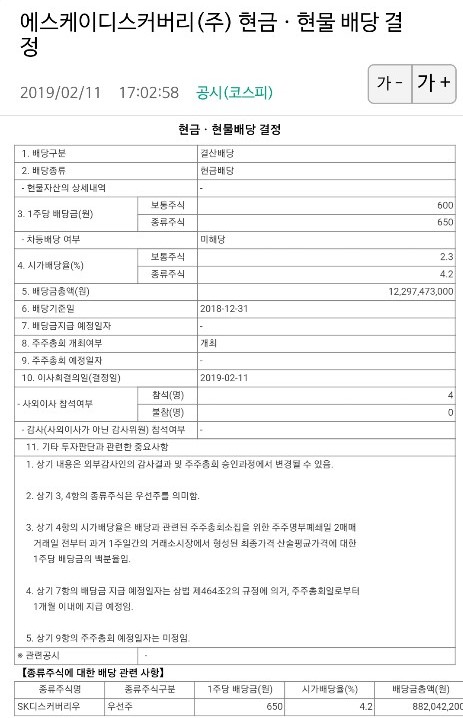 1. SK디스커버리(sk디스커버리우) 배당금 및 배당일