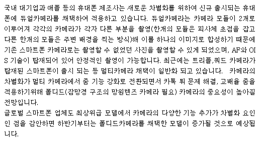 또한, 휴대폰 제조사의 듀얼/트리플/쿼드 카메라 등의 멀티카메라 진출은 매출의 증대로 이어지기를 기대하고 있습니다.