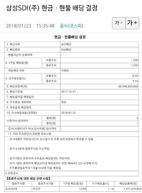 1. 삼성sdi(삼성sdi우) 배당금 및 배당일