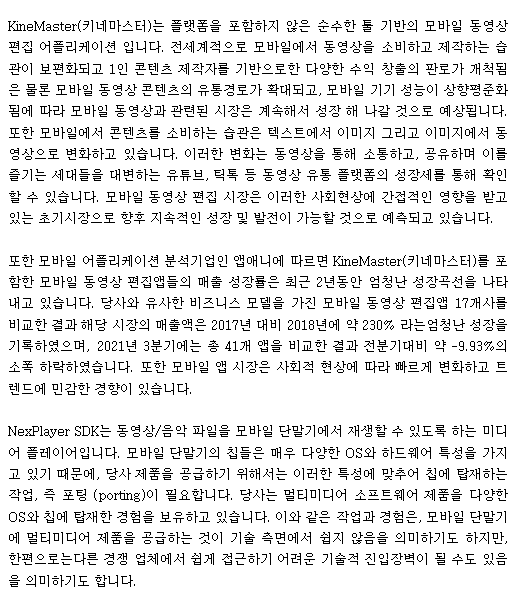 21년 3분기 기준 매출 비중은 키네마스터 89%, NexPlayer SDK 10%입니다.